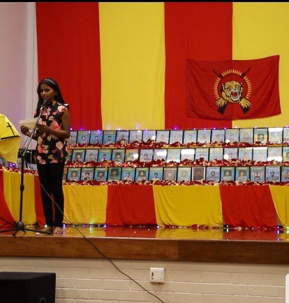 திருமதி தனலெட்சுமி ரவிச்சந்திரன் அவர்களின் மாவீர் தின சிறப்பு கவிதையை தொடர்ந்து தமிழ் மொழிக்காவும் தமிழீழத்திற்காகவும் தமிழ் இனத்திற்காகவும் தங்களை அர்ப்பணித்த மாவீரர்களுக்கு செய்யும் நன்றிக் கடனாக பெற்றோர்கள் தங்கள் பிள்ளைகளுக்கு தமிழ்வழிக் கல்வியை ஊக்கப்படுத்த வேண்டும் என்ற மாவீரர்களின் நினைவுரையுடன் மேடைநிகழ்ச்சிகள் நிறைவடைந்தன.