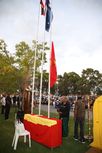 அதனைச்தொடர்ந்து, அவுஸ்திரேலிய பூர்வீக மக்களின் கொடியை திரு பிறேமச் செல்வம் அவர்கள் ஏற்றிவைக்க, அவுஸ்திரேலிய தேசியக்கொடியை திருமதி கிறிஸ்டின் ஓபூயிஸ் ஏற்றிவைத்தார். தொடர்ந்து தமிழீழத் தேசியக் கொடியை மாவீரர் ஒருவரின் தாயார் ஏற்றிவைத்தார்.