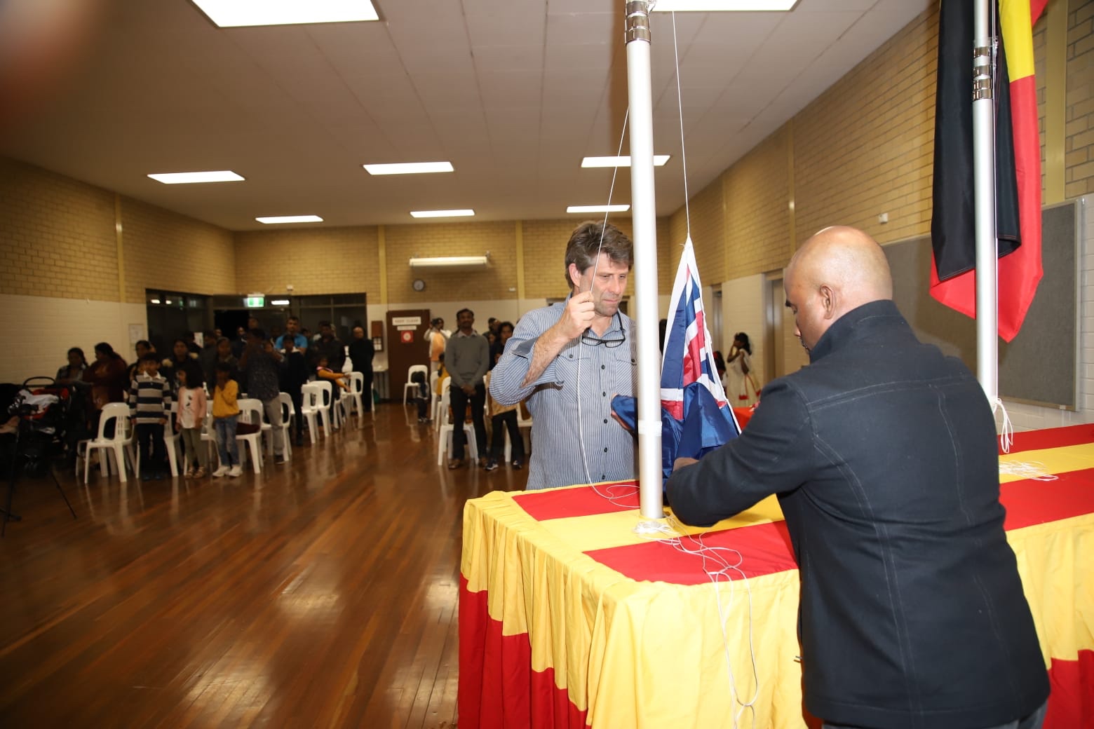 நிகழ்வில் பொதுச்சுடரினை இலங்கை தமிழ் சங்கத்தின் தலைவர் திரு ஜீவன் ஜெகநாதன் அவர்கள் ஏற்றி வைக்க தொடர்ந்து அவுசுரேலிய பூர்வீக மக்களின் கொடியை தமிழ் சங்கத்தின் உப தலைவர் திரு சோமசுந்தரம் அவர்கள் ஏற்றிவைக்க அவுசுரேலிய தேசியக்கொடியை ஏதிலிகளுக்காக குரல் கொடுத்து வருபவரும் பிறிமன்டல் நகரசபை உறுப்பினருமான சாம் வெய்ன்ரைட் அவர்கள் ஏற்றிவைத்தார்.
