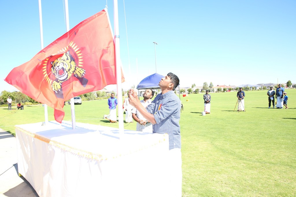 தொடர்ந்து தேசியக் கொடிகள் ஏற்றி வைக்கப்பட்டன. அவுசுரேலிய தேசியக்கொடியினை, திரு. மகேசன் நமசிவாயம் அவர்கள் ஏற்றி வைக்க தொடர்ந்து அவுசுரேலிய பூர்வகுடி மக்களின் கொடியினை திரு. றோசான் அவர்கள் ஏற்றி வைத்தார். அதனை தொடர்ந்து தமிழீழ தேசியக் கொடியினை திரு. வித்தியாகரன் அவர்கள் ஏற்றி வைத்தார்.