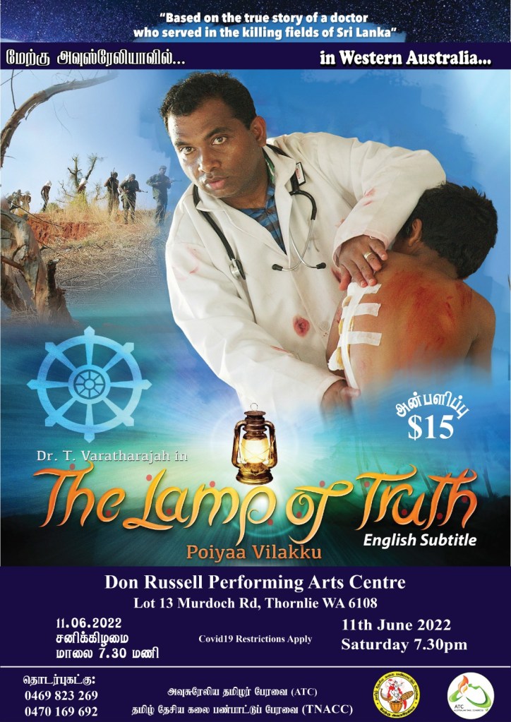 The film, “The Lamp of Truth”, starring Dr. Varatharajah Thurairajah, who worked as a doctor during the genocidal war in 2009 highlights the reality of serving in the killing fields in Sri Lanka. It is based on real events that occurred in the war zone in Sri Lanka and focuses on the shelling hospitals, bombing safe zone, killing of surrendered civilians that lead to genocide, and the truth that future and current generations should be told.