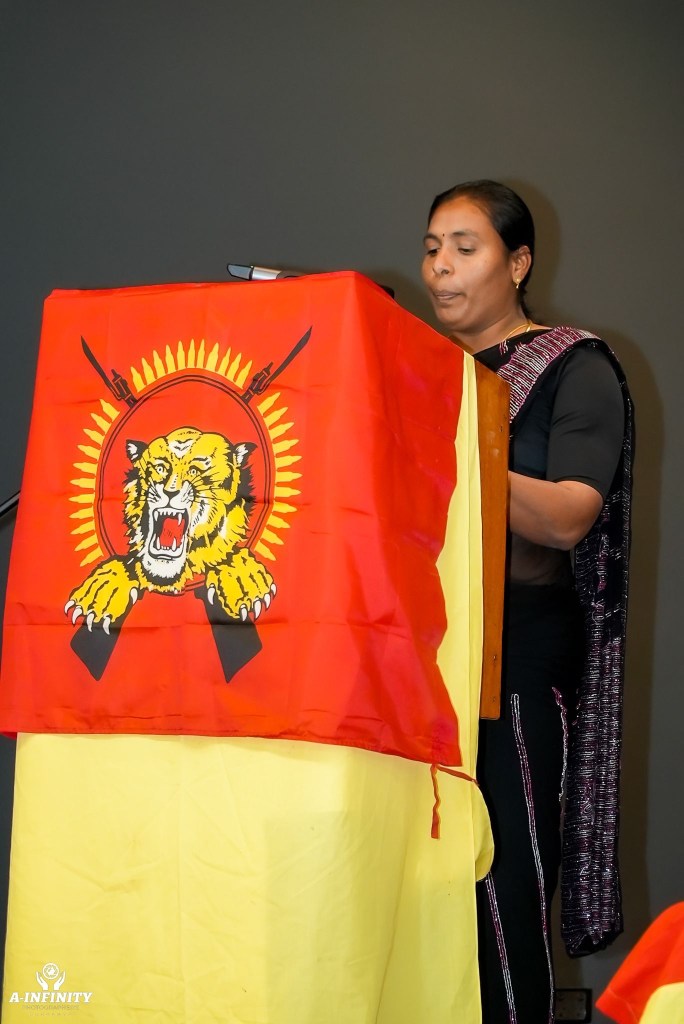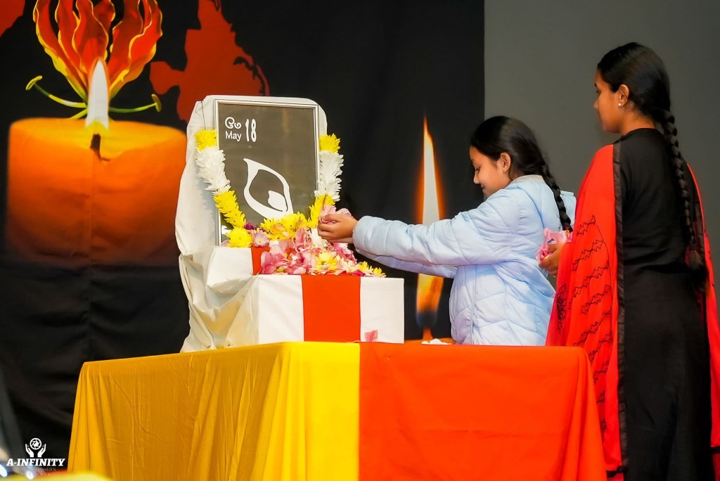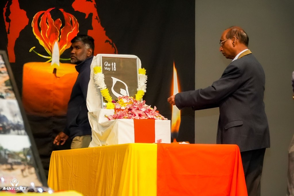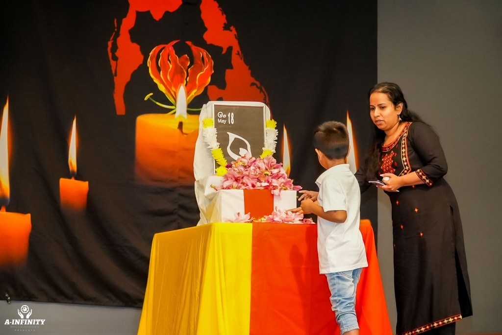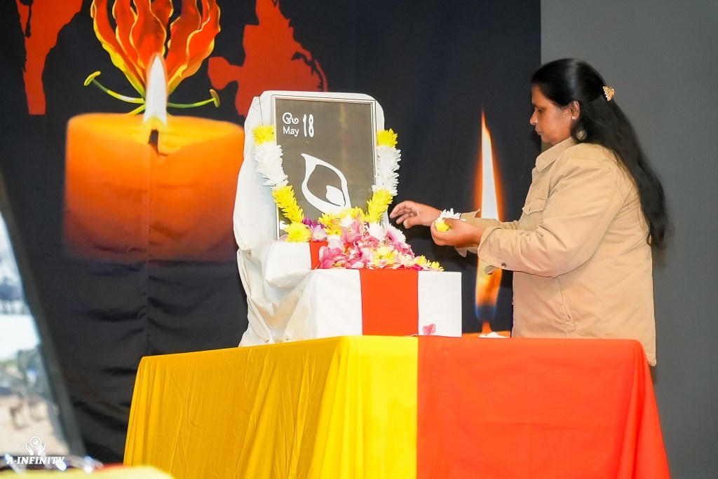 நிகழ்ச்சியில் தமிழின அழிப்பில் உயிரிழந்தோருக்கான ஈகைச்சுடரினை பிரத்தியேகமாக அமைக்கப்பட்ட முள்ளிவாய்க்கால் இனவழிப்பு மாதிரி பீடத்தில் முள்ளிவாய்க்கால் பேரவலத்தினை கடந்து வந்த செல்வி. தர்சனா அவர்கள் ஏற்றிவைத்தார்.