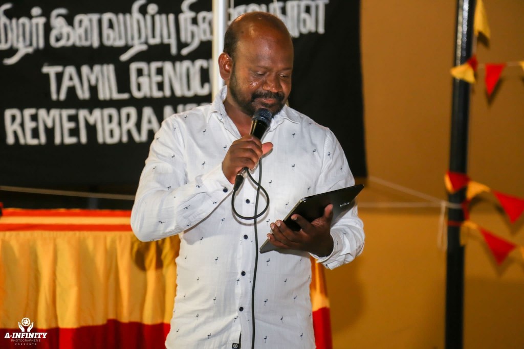 திரு. நிமலகரன் அவர்கள் தமிழின அழிப்பு நாள் நிகழ்ச்சிகளை தொகுத்துவழங்கினார்.