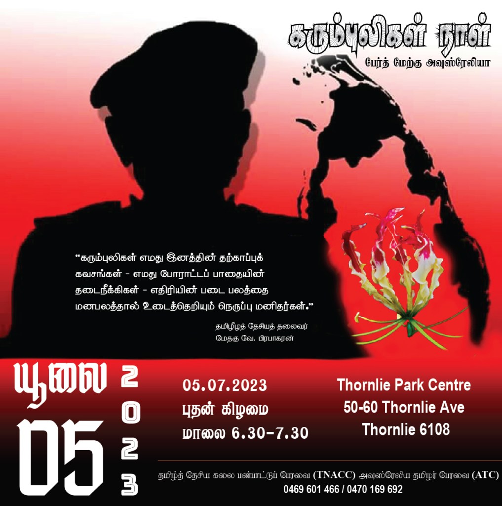 தரை கடல் மட்டுமல்லாது வானிலும் ஏறி சாதனைகளை தமதாக்கியவர்கள் கரும்புலிகள். எதிரியின் படைபலத்தை தமது மனபலத்தால் உடைத்தெறிந்து தமிழின விடுதலைக்கு வித்தான கரும்புலி மாவீரர்களை பூசிக்கும் நினைவேந்தல் நிகழ்வு பேர்த்தில் உணர்வுபூர்வமாக இடம்பெற்றது.