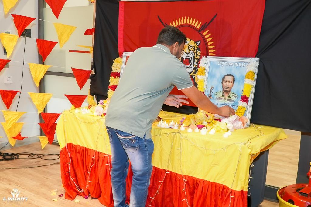 26-09-1987 அன்று ஈகைச்சாவெய்திய லெப் கேணல் திலீபன், 26-09-2001 அன்றில் வீரச்சாவைத் தழுவிக்கொண்ட மூத்த தளபதி கேணல் சங்கர் (முகிலன்) ஆகியோரது திருவுருவப்படங்களுக்கு திரு. புஸ்பகுமார் அவர்கள் ஈகைச்சுடரை ஏற்றி வைத்ததை தொடர்ந்து, தமிழீழ தாயக விடுதலைக்காக, தங்கள் இன்னுயிரை ஈகம் செய்த மாவீரர்களையும், நாட்டுப்பற்றாளர்களையும், மாமனிதர்களையும், உயிர்நீத்த தமிழக உறவுகளையும், போராட்டத்தின்பால் கொல்லப்பட்ட தமிழ் உறவுகளையும் நினைவில் சுமந்து, தியாக தீபம் திலீபன் அவர்களின் உன்னத தியாகத்தை மனதில் நிறுத்தி அகவணக்கம் செலுத்தப்பட்டது.