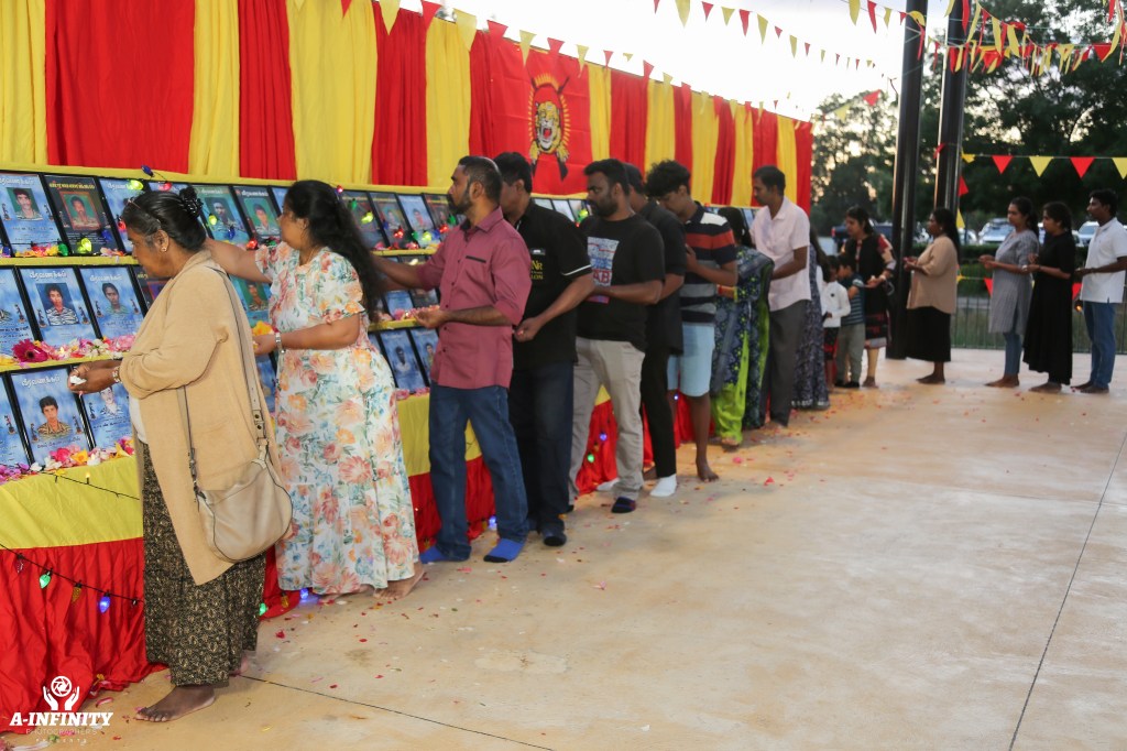 தமிழீழ தேசியத் தலைவர் மேதகு வே பிரபாகரன் அவர்கள் 2008ஆம் ஆண்டு ஆற்றிய மாவீரர்நாள் உரை ஒலிபரப்பப்பட்டதை தொடர்ந்து நினைவொலி எழுப்பப்பட்டது. நினைவொலியை தொடர்ந்து தமிழீழ விடுதலைப் போராட்டத்தில் தமது இன்னுயிரை ஈந்த மாவீரர்களுக்கும் அதன்பால் கொல்லப்பட்ட பொதுமக்களுக்குமாக அகவணக்கம் செலுத்தப்பட்டது.