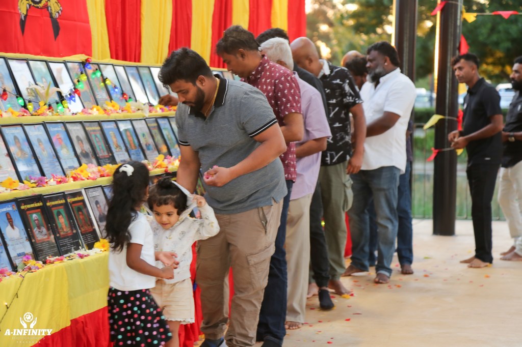 தொடர்ந்து முதன்மைச் ஈகைச்சுடரினை லெப்டினன் நேயமலையவன் அவர்களின் சகோதரி திருமதி மெனிஷ்ரெலா விமலாதித்தன் அவர்கள் ஏற்றிவைக்க தாயக விடுதலைப் போராட்டத்தில் முதல் களப்பலியாகிய லெப். சங்கர் அவர்களது திருவுருவப்படத்திற்கும், முதற் பெண்மாவீரர் 2ம் லெப் மாலதி அவர்களது திருவுருவப்படத்திற்கும் ஈகைச்சுடர்கள் ஏற்றப்பட சமநேரத்தில் மாவீரர்களின் திருவுருவப்படங்கள் தாங்கிய மாதிரி வடிவக் கல்லறைகளுக்கு அவர்களின் பெற்றோர்கள், சகோதரர்கள் மற்றும் உரித்துடையோர்கள் ஈகைச்சுடர்களை ஏற்றிவைக்க துயிலுமில்ல பாடல் ஒலிக்கப்பட்டது. சுடர்களின் நடுவே மாவீரர்செல்வங்களின் உருவை அவர்களின் உணர்வை, இலட்சியத்தை தரிசித்துருகும் அற்புத நிகழ்வில் அனைவரும் ஒன்றியிருந்தனர்.