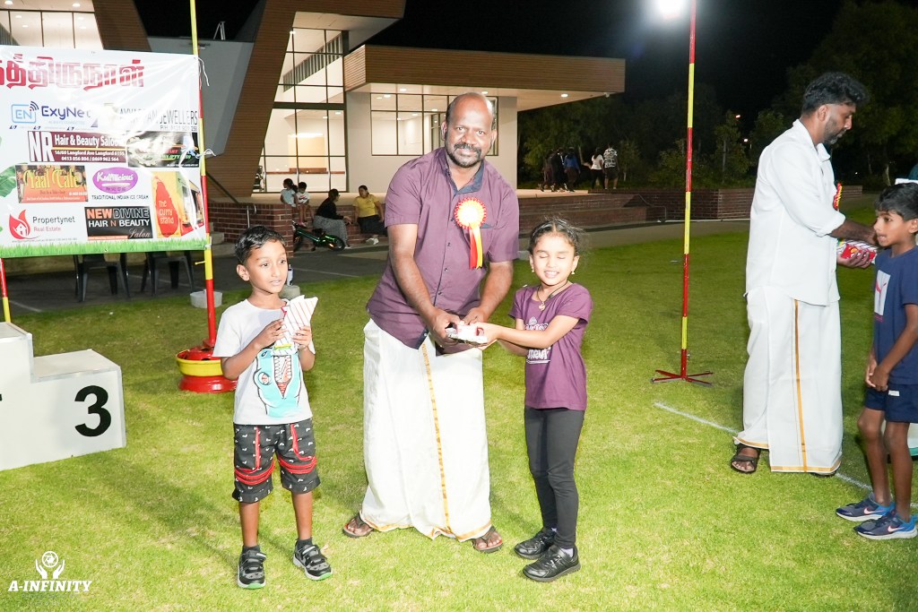 மாலை 7:30 மணியளவில் விளையாட்டுக்களில் வெற்றியீட்டியோருக்கான பரிசளிப்பு மற்றும் நடந்து முடிந்த 2024 கேணல் கிட்டு வெற்றிக்கிண்ண போட்டிகளில் வென்ற அணிகள் மற்றும் சிறப்பாட்ட வீரர்களுக்கான கேடயங்களும் வழங்கப்பட்டன. பரிசில்களை அனுசரணையாளர்கள் மற்றும் சிறப்பு விருந்தினர்கள் வழங்கி வைத்தனர். அடுத்து திரு விமலாதித்தன் அவர்களால் நன்றியுரை நிகழ்த்தப்பட்டதை தொடர்ந்து தேசியக்கொடிகள் இறக்கப்பட்டு நிகழ்சிகள் யாவும் நிறைவுக்கு வந்தன.