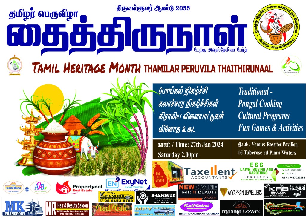 தமிழ்தேசிய கலைபண்பாட்டுப் பேரவை வருடாவருடம் நிகழ்த்தும் தமிழர் பெருவிழா தைத்திருநாள் பேர்த்தில் 27/01/2024 அன்று சிறப்பாக கொண்டாடப்பட்டது. பெருவிழாவினை அவுஸ்ரேலிய தமிழர் பேரவை மற்றும் இலங்கை தமிழ் சங்கம் இணைந்தும் பேர்த் வர்த்தக நிறுவனங்களின் அனுசரணையுடனும் சிறப்புற நடைபெற்றது.