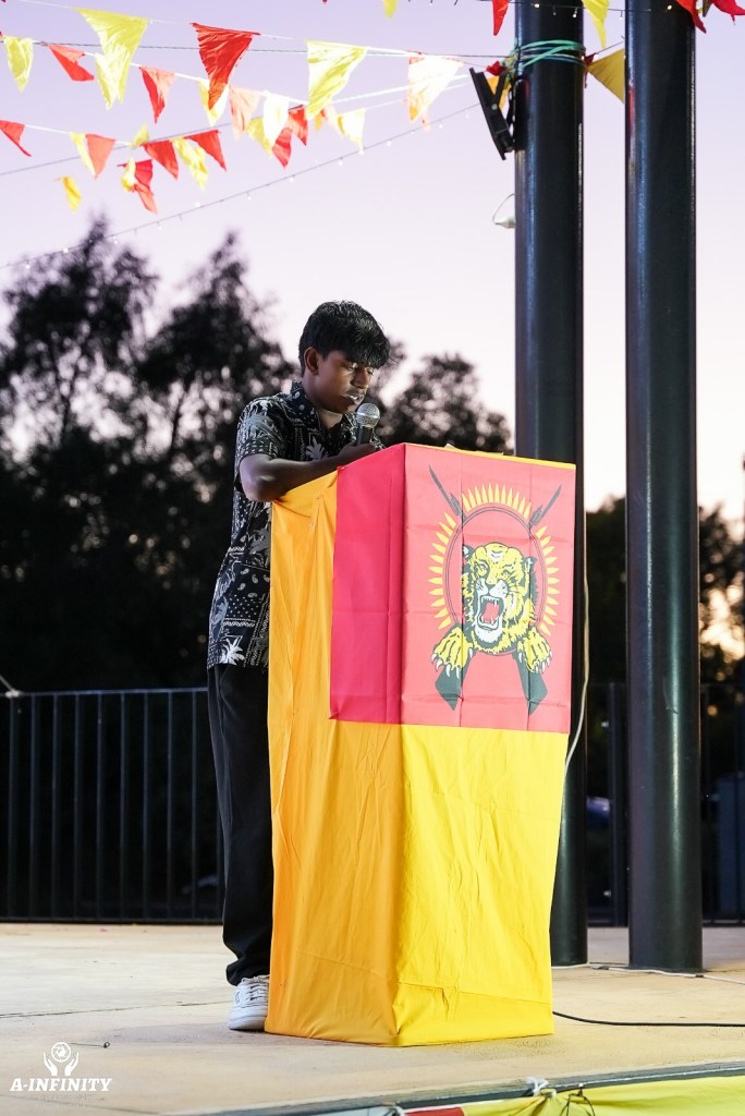 நிகழ்வுகளில் முதலாவதாக தேசியக்கொடிகள் ஏற்றப்பட்டன. அவுஸ்ரேலிய தேசியக் கொடியினை இலங்கை தமிழ்ச் சங்க தலைவர் திரு. பிரதீபன் அவர்கள் ஏற்றிவைக்க, தொடர்ந்து அவுஸ்திரேலிய பூர்விக மக்களின் கொடியை தமிழ்த் தேசிய செயற்பாட்டாளர் திரு. ஜீவகன் அவர்களும் ஏற்றிவைத்தனர். தொடர்ந்து தமிழீழத் தேசியக் கொடியினை தமிழ்த் தேசிய செயற்பாட்டாளர் திரு. கிருபாகரன் பாலசுந்தரம் அவர்கள் ஏற்றிவைத்தார்.
