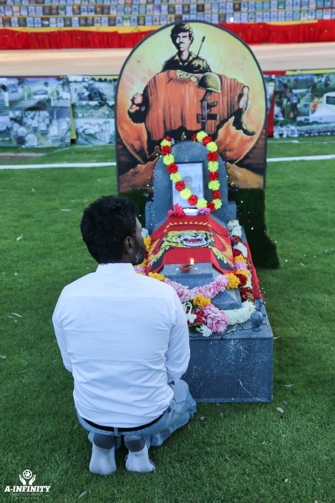 தொடர்ந்து முதன்மைச் ஈகைச்சுடரினை ஓயாத அலைகள் 3 நடவடிக்கையின் போது வீரச்சாவைத் தழுவிய மாவீரர் மேஜர் அமலனின் சகோதரர் திரு சுதன் மயில்வாகனம் அவர்கள் ஏற்றிவைக்க தாயக விடுதலைப் போராட்டத்தில் முதல் களப்பலியாகிய லெப். சங்கர் அவர்களது திருவுருவப்படத்திற்கு தமிழ்த் தேசிய செயற்பாட்டாளர் திரு. சிவன் அவர்கள் ஈகைச்சுடரினை ஏற்றப்பட சமநேரத்தில் மாவீரர்களின் திருவுருவப்படங்கள் தாங்கிய மாதிரி வடிவக் கல்லறைகளுக்கு அவர்களின் பெற்றோர்கள், சகோதரர்கள் மற்றும் உரித்துடையோர்கள் ஈகைச்சுடர்களை ஏற்றிவைக்க, துயிலுமில்ல பாடல் ஒலிக்கப்பட்டது. மிளிரும் சுடர்களின் நடுவே மாவீரர்செல்வங்களின் உருவை அவர்களின் உணர்வை, இலட்சியத்தை தரிசித்துருகும் அற்புத நிகழ்வில் அனைவரும் ஒன்றியிருந்தனர்.