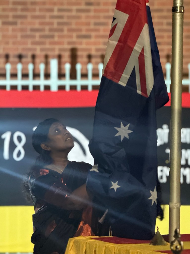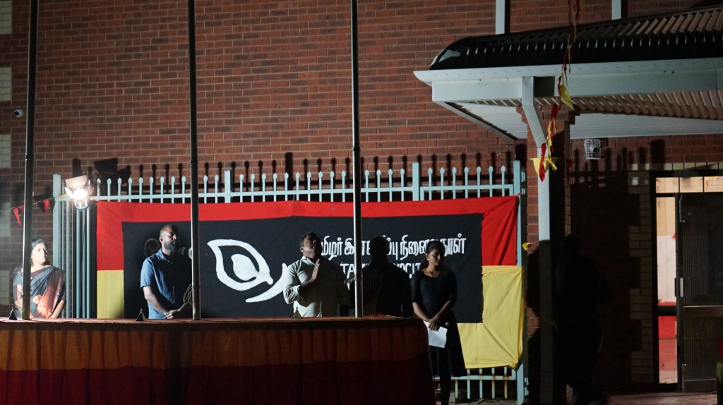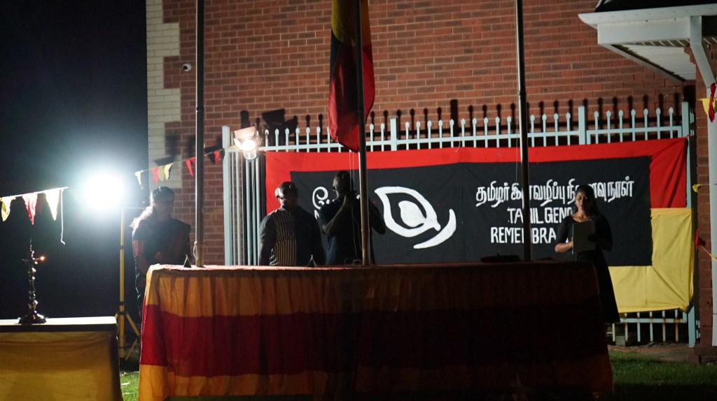 நிகழ்ச்சியில் பொதுச்சுடரினை, திருமதி துர்க்கா சிற்பரன் அவர்கள் ஏற்றினார். தொடர்ந்து, அவுஸ்திரேலிய தேசியக்கொடியை திருமதி வளர்மதி ரவி அவர்கள் ஏற்றிவைக்க, அவுஸ்திரேலிய பழங்குடிமக்களின் கொடியை தமிழ்த்தேசிய செயற்பாட்டாளர் திரு.தனுசன் அவர்கள் ஏற்றிவைக்க, தமிழீழத் தேசியக்கொடியை திரு.அருணன் அப்புத்துரை அவர்கள் ஏற்றிவைத்தார்.